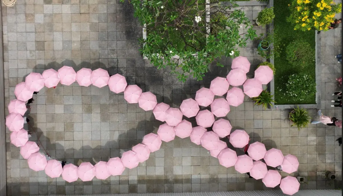 Nghi thức bung dù tạo thành chiếc nơ hồng khổng lồ như một lời sẻ chia và niềm tin lan tỏa đến cộng đồng: cùng nhau chúng ta sẽ chiến thắng căn bệnh ung thư vú.