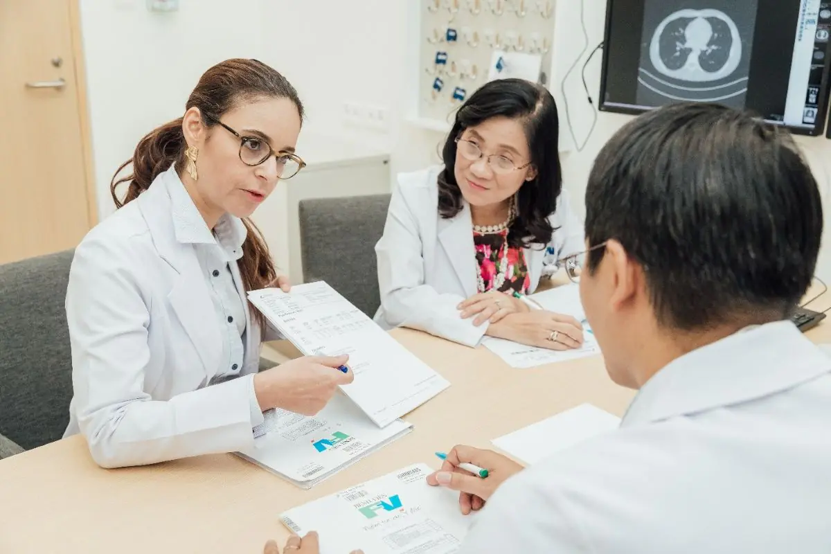 Bác sĩ Basma M’Barek hội chẩn cùng đồng nghiệp để lên phát đồ điều trị cá nhân hóa cho từng bệnh nhân ung thư